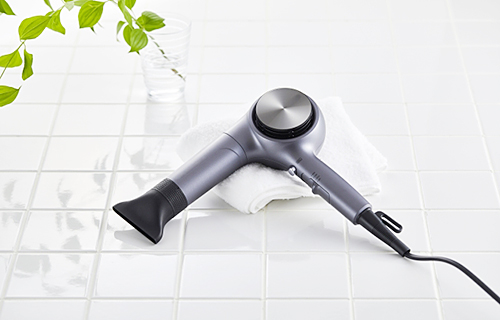 空気中の水分を超微細化した水分たっぷりのイオンを「ナノイー」といいます。これには、一般的なマイナスイオンの約1000倍以上(体積比)の水分が含まれています。このパナソニックのナノケアシリーズを使用することで、この「ナノイー」が髪に浸透し、髪の水分バランスや髪に水分を与え続けることで、つややかでスタイリングのしやすい髪へ導きます。「ナノイー」は髪や地肌に優しい弱酸性でもあるため、地肌にうるおい皮脂ケアにも繋がります。