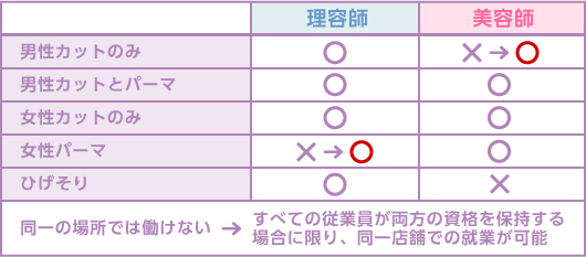 つまりは、「カットは理容師の業務、パーマや化粧が美容師の業務」と決められており、さらには、「同じ営業所で、理容師と美容師が一緒に仕事をすることはできない」ということなのです。
