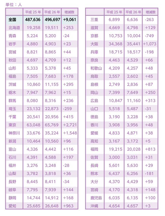 平成26年3月末での美容室の数(美容所として登録がある営業所)は、平成25年より3436件増えて、「23万7525件」となっています。