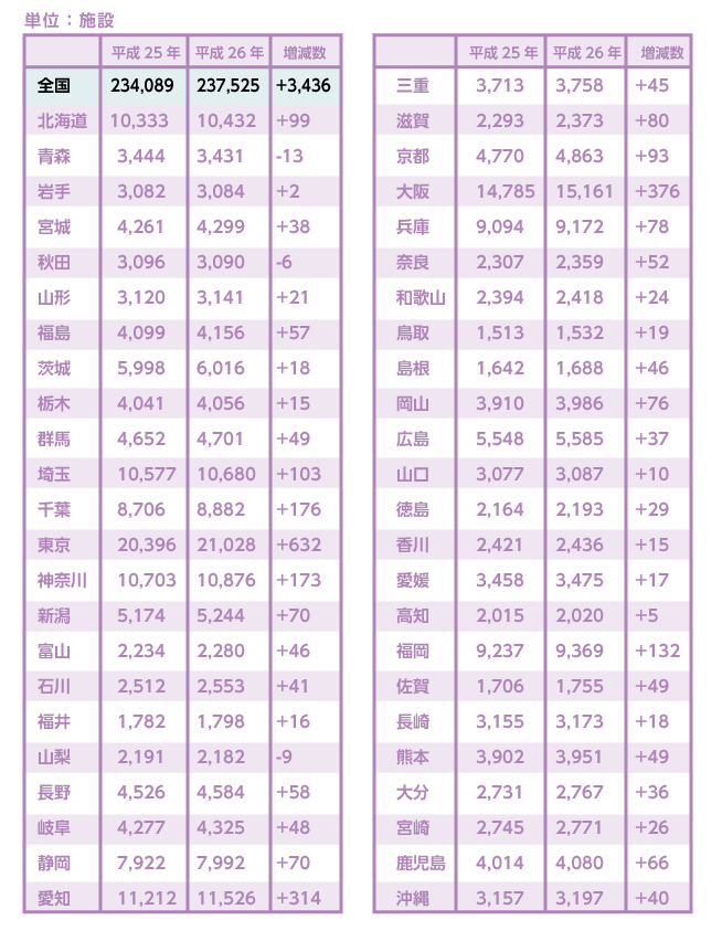 毎年、3000件ほど増加があることが分かります。閉店している美容所の数は明らかではありませんが、閉店している美容所の数を上回り、なお3000件増えているということになります。